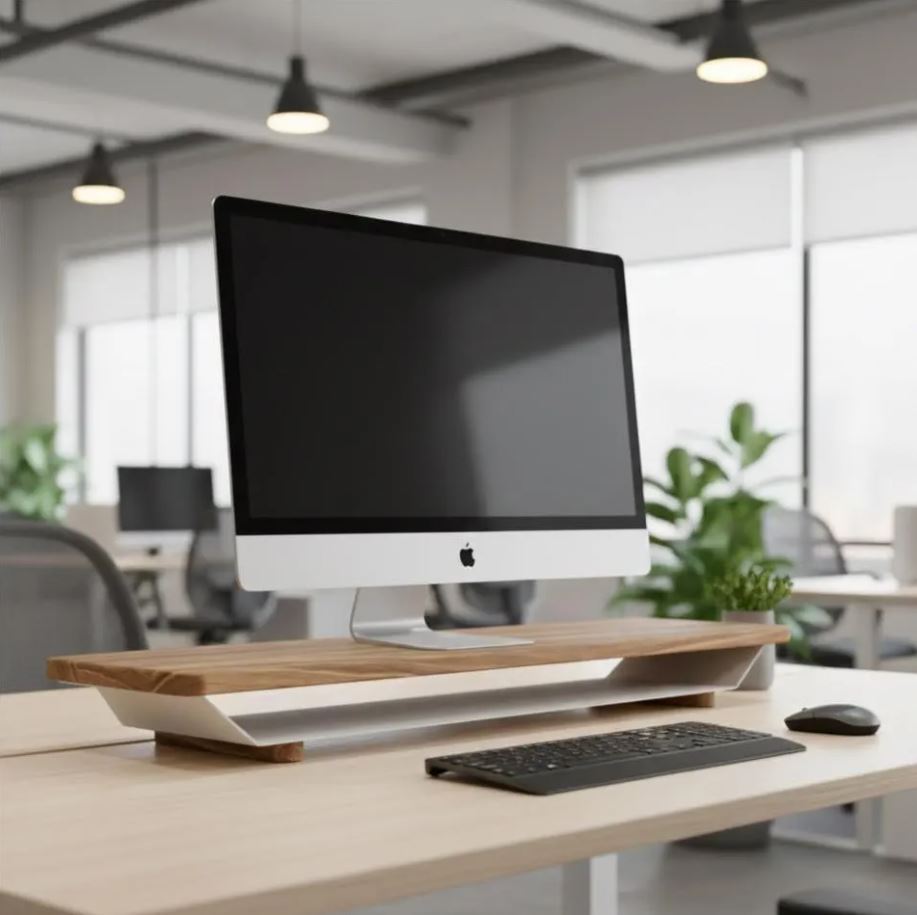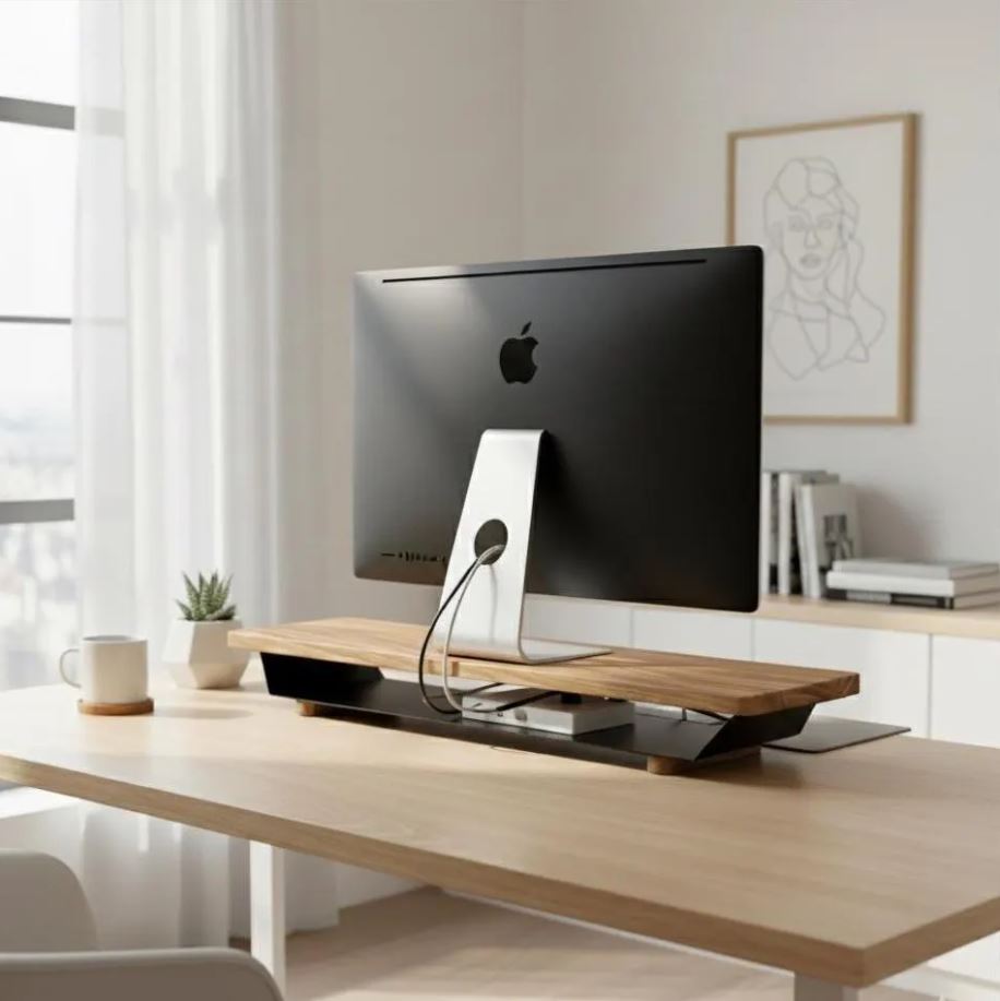 Handcrafted solid oak desk organizer minitor stand with storage for keyboard